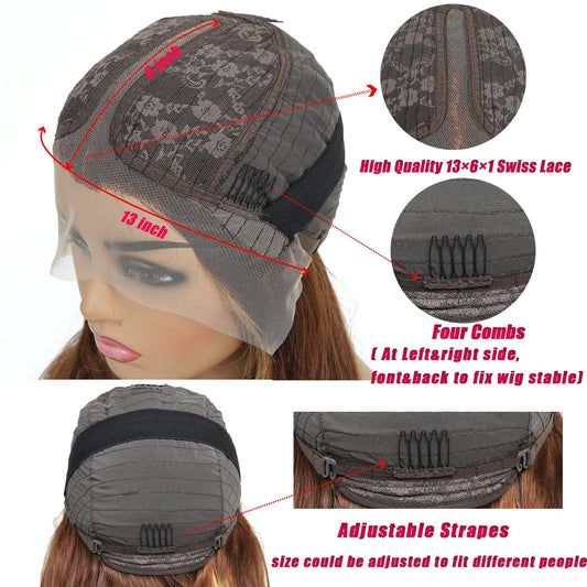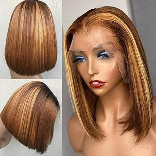 Bob Wig Human Hair Glueless Wigs Human Hair Pre Plucked Pre Cut Human Hair Wig Lace Front Wigs Human Hair 13X4 150% Density Highlight 14Inch Human Hair Wigs for Black Women