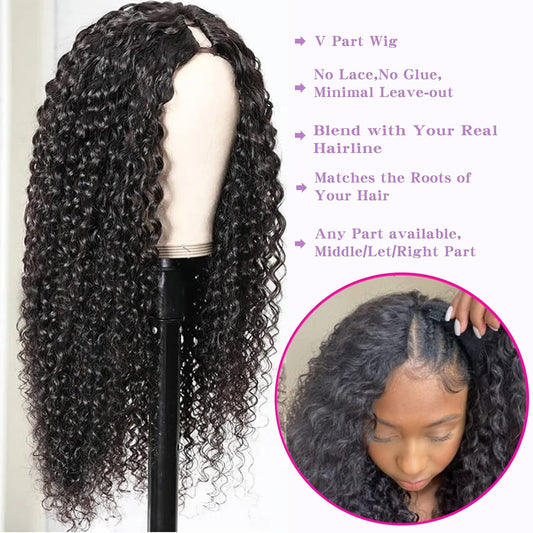 V Part Wig Human Hair No Leave Out Thin Part Wig Glueless Wigs Human Hair Pre Plucked Upgrade U Part Human Hair Wig Beginner Friendly No Sew in No Glue 150% Density 16 Inch