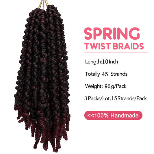 3 Bundles/Lot 8 Inch Short Spring Twist Crochet Braids Bomb Twist Crochet Hair, Afro Kinky Curly Crochet Braids Synthetic Hair Extensions for Hair Braiding